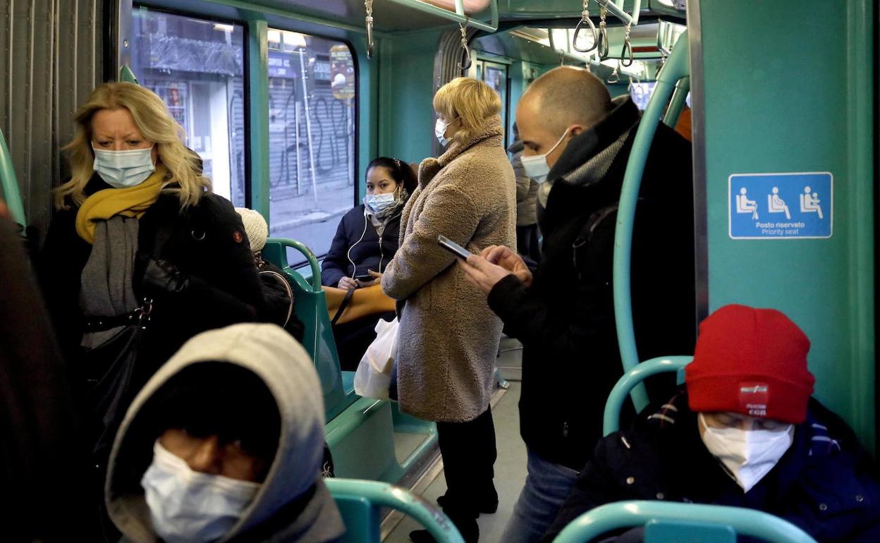 Viajeros dentro de un autobús. Efe