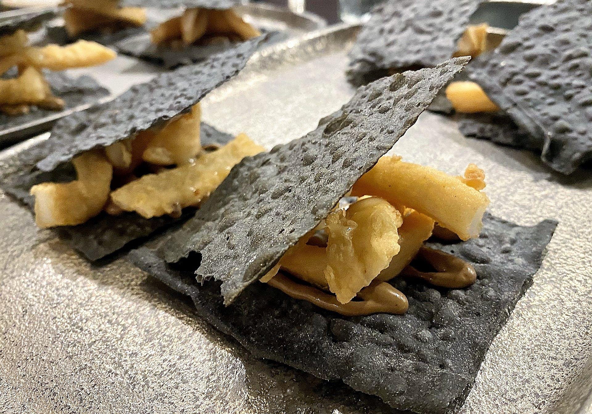 Volvemos hasta Telde para tomar asiento en Unión, del chef Mario Ureña, porque Marina ha seguido su evolución y siente fascinación por sus huevos fritos con camarones y chips de batata o sus carrilleras de vaca con ñoquis.