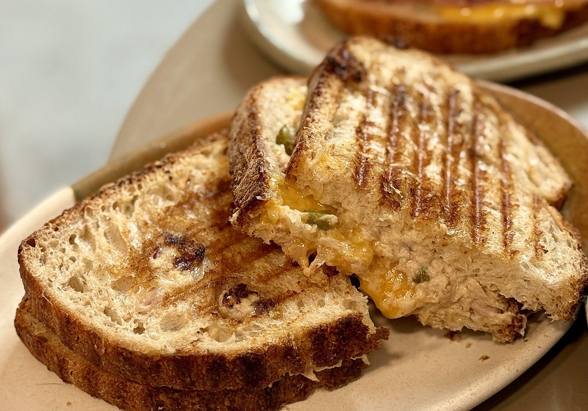 El de 'tuna melt' que también lo hacen suyo con una versión cargada de potencia y matices: atún, pepinillo encurtido, cebolla roja, mayonesa, mostaza, tomate y queso cheddar. Y, como no, el nivel superlativo lo aporta el pan de Panalogía.