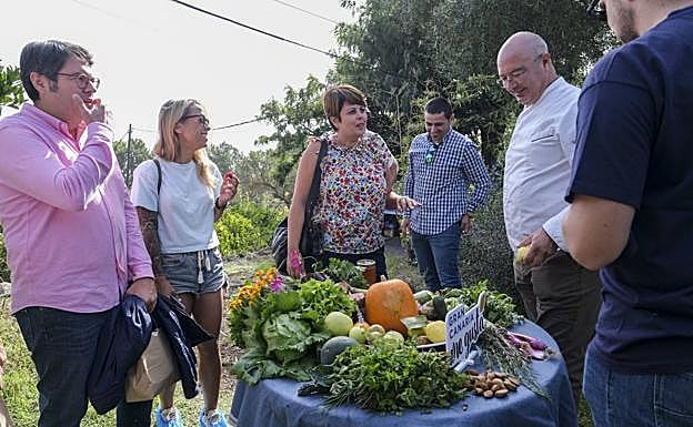 Por su parte, María Calvo del Castillo, de Ecohuerta Canaria, que comercializa productos agrícolas ecológicos certificados, procedentes de su finca en Santa Brígida y de otros productores locales para los que realiza también servicio de entrega a domicilio, explicó que llevan cuatro años dedicados a la agricultura ecológica, «tomando el relevo generacional de mi padre y, tras muchas pruebas y errores, hemos conseguido cierta estabilidad y poder dedicarnos a esto de manera exclusiva». «Tener hoy una visita así es una gran oportunidad de negocio y estamos muy contentos de formar parte de esta primera ruta», aseguró esta joven emprendedora que dejó su vida y su trabajo en Londres para regresar a Gran Canaria con su pareja y emprender en el sector primario.