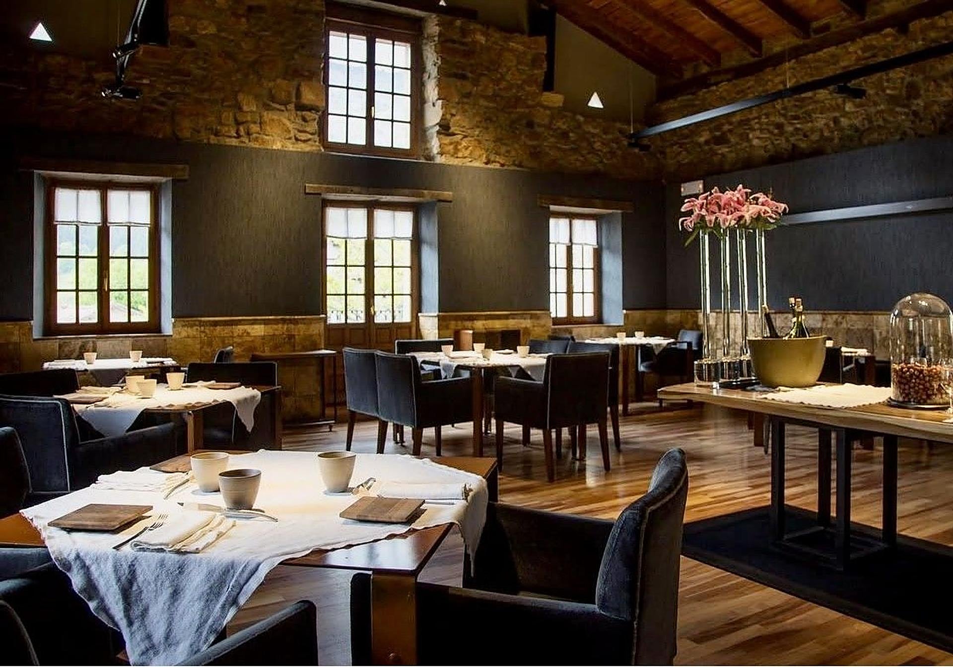 Su exterior es rústico y sobrio, con muros de piedra, tejado a dos aguas y detalles en madera que conservan el encanto tradicional vasco. No hay ostentación: la sencillez del edificio refleja la filosofía del chef Bittor Arginzoniz, centrada en el producto y el fuego. La comida, tan sencilla como única: todo a la brasa. La mantequilla, los entrantes, los mariscos, pescados, carnes y postres. Todo. Me quedo con tres platos en el top: el queso de búfala servido templado, ligeramente ahumado, con textura cremosa y sabor delicado, acompañado de pan artesanal; las gambas de Palamós, más brasa; y el besugo. Una maravilla. Dije tres, pero no puedo dejar fuera el espectacular flan, también a la brasa.