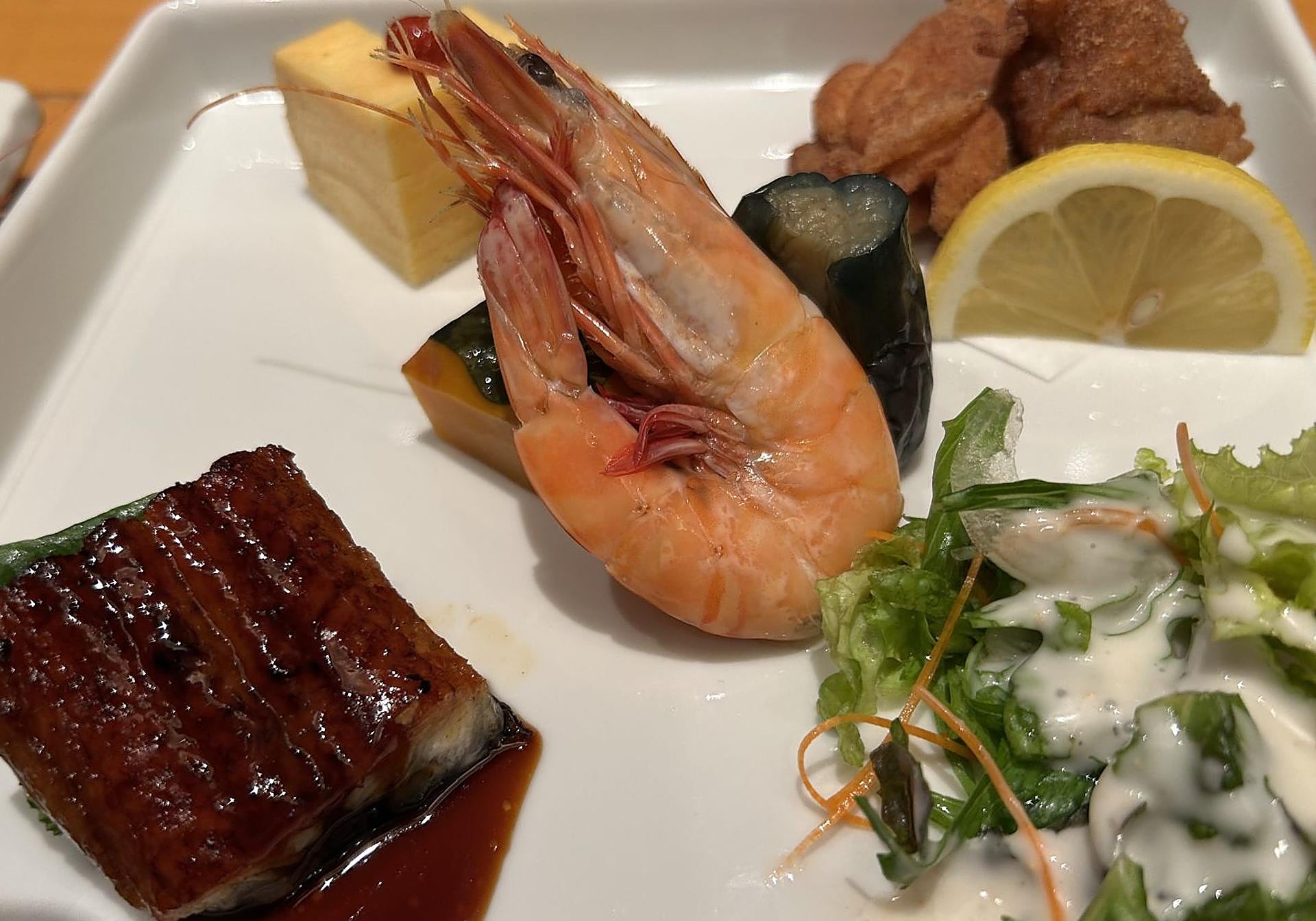 Por la tarde nos fuimos a comer a uno de aquellos restoranes: Sushi. Eran las 20h. Iba a cerrar. Y como en su puerta había varias personas esperando, intuí que ofrecía aun más garantías. Pedimos sushis y sashimis con arroz blanco así como un plato con anguila asada -bocado que adora el japonés- dos langostinos, tortilla, berenjena al horno, pollo frito… y, aparte, una ensalada y hasta un huevo frito metido en un bowl cuadrado. No entendí el potpurrí y el camarero nunca me entendió a mí. Era japonés cerrado.
