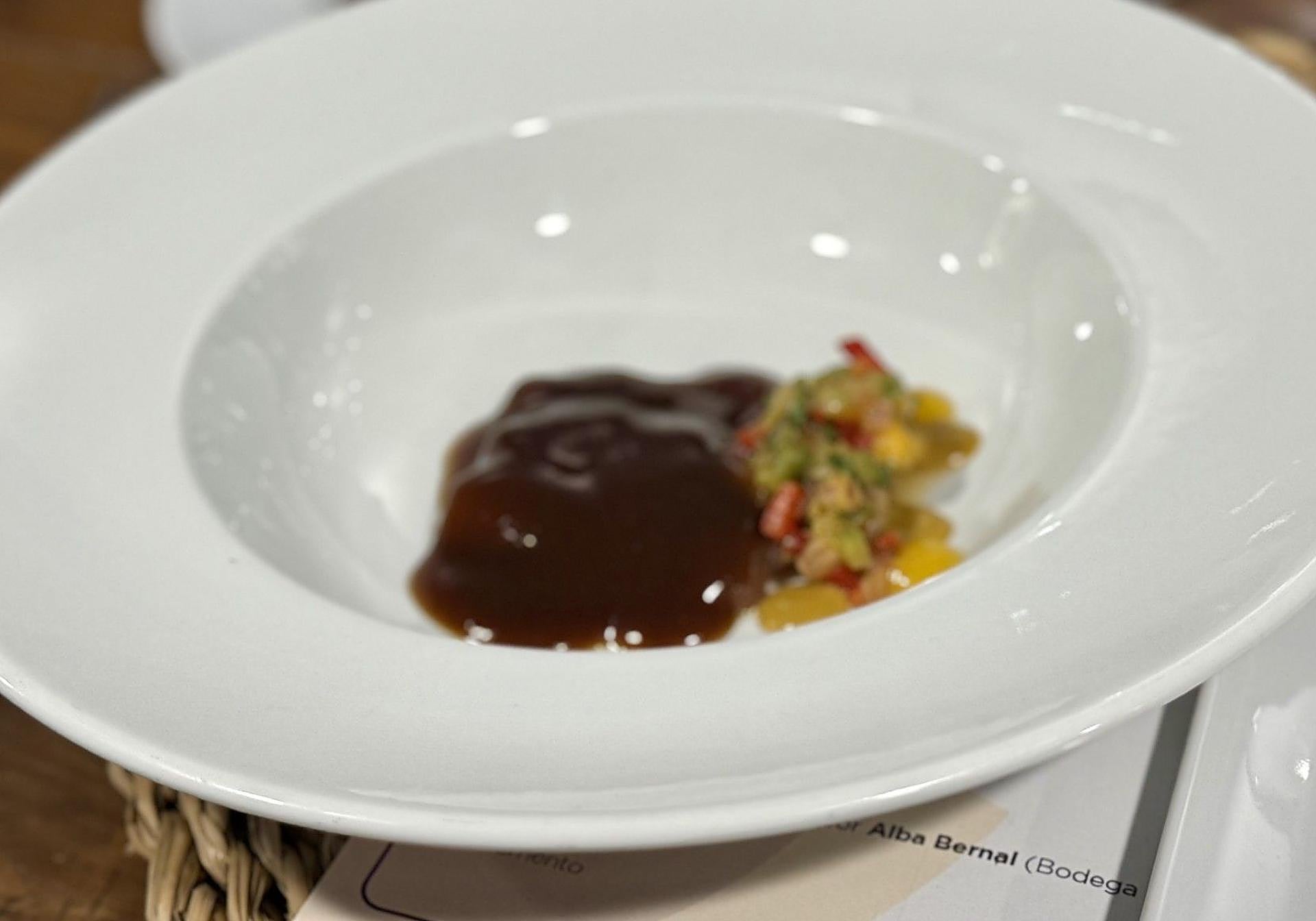 Le siguió lo que muchos comensales consideraron la 'revelación del día' con una carajaca en crema, cebolla y limón verde, presentada en cestitas crujientes que añadían textura y contraste, lo que llevó a que muchos de los invitados se detuvieran a preguntar «¿qué es la carajaca?: una elaboración que resultó ser todo un acto de seducción desde la cocina, siempre honesta, de Ortega y su empeño en rescatar lo propio, elevarlo con técnica y convertir lo local en universal.