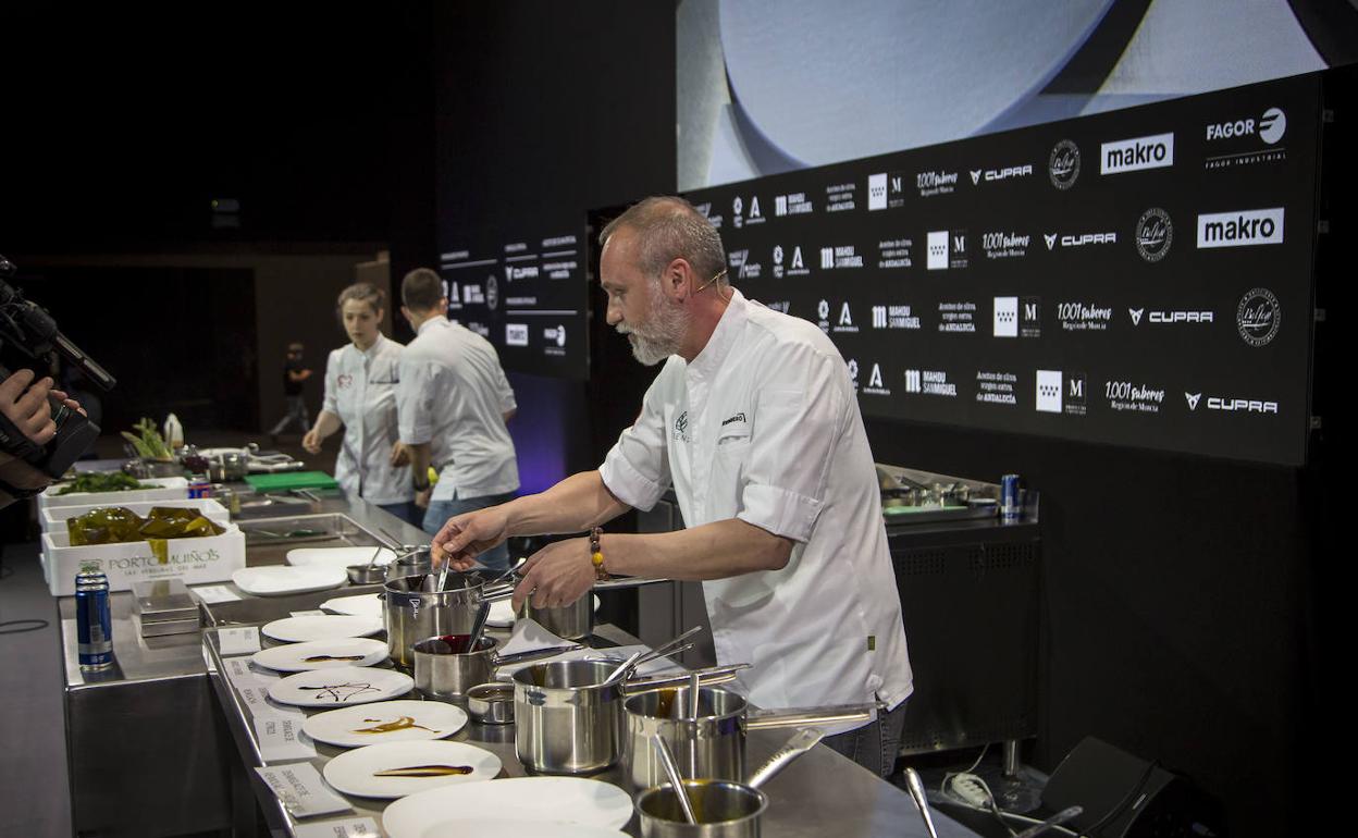 Rodrigo de la Calle, uno de los pioneros en la revolución verde y la aplicación de la economía circular -tema del congreso en esta edición-, se subió al escenario para hablar de las posibilidades y ventajas del mundo vegetal en la elaboración de la demiglace. Para ello, el chef tras reivindicar que su actual restaurante ofrece también carnes y pescados, aunque los vegetales protagonicen su carta, se remontó a una ponencia de 2009 en la que se hacía referencia a su primera demiglace vegetal. Desde entonces, el De la Calle afirma que ha habido una evolución. «Por aquel entonces, texturizábamos con kuzu. Hemos seguido esa receta y esas técnicas».