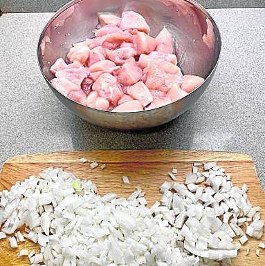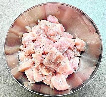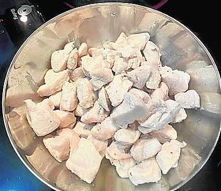 Salpimentaremos el pollo y reservamos hasta el momento de utilizarlo.