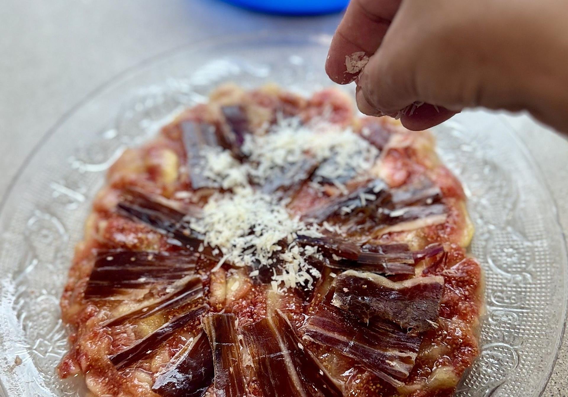 Colocaremos entonces la parte que queda descubierta sobre el plato en el que vayamos a servir nuestro carpaccio.