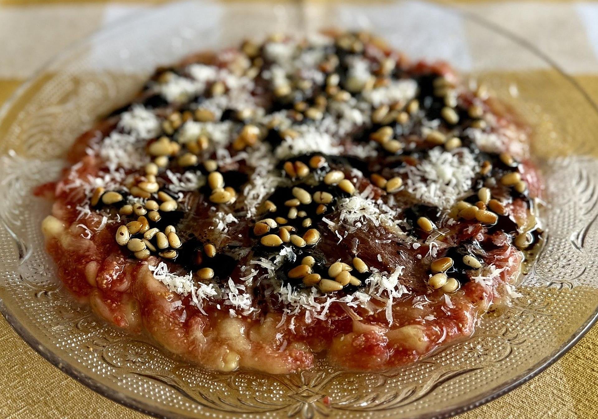 La emoción y el ayuno previo, porque en casa de Ángel no solo se come rico, sino que el límite en cantidad puede acercarse al infinito, además de cuatro playas previas andando la misma mañana, fueron toda mi actividad antes del encuentro. Dos arroces eran el menú anunciado y los compañeros de mesa y mantel prometían tanto como el repertorio gastro y, un año más, Angelito nos robó el corazón con su cocina y como sorpresa, este carpaccio de higos al que no le falta detalle y que no he podido parar de hacer y de comer, desde que se me terminaron las vacaciones.