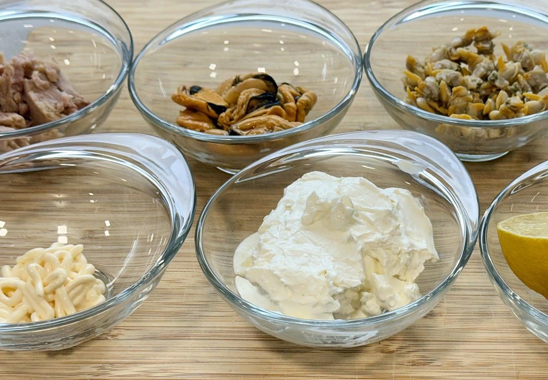 Para el paté de mejillones, añadir 60 g de mejillones en escabeche
