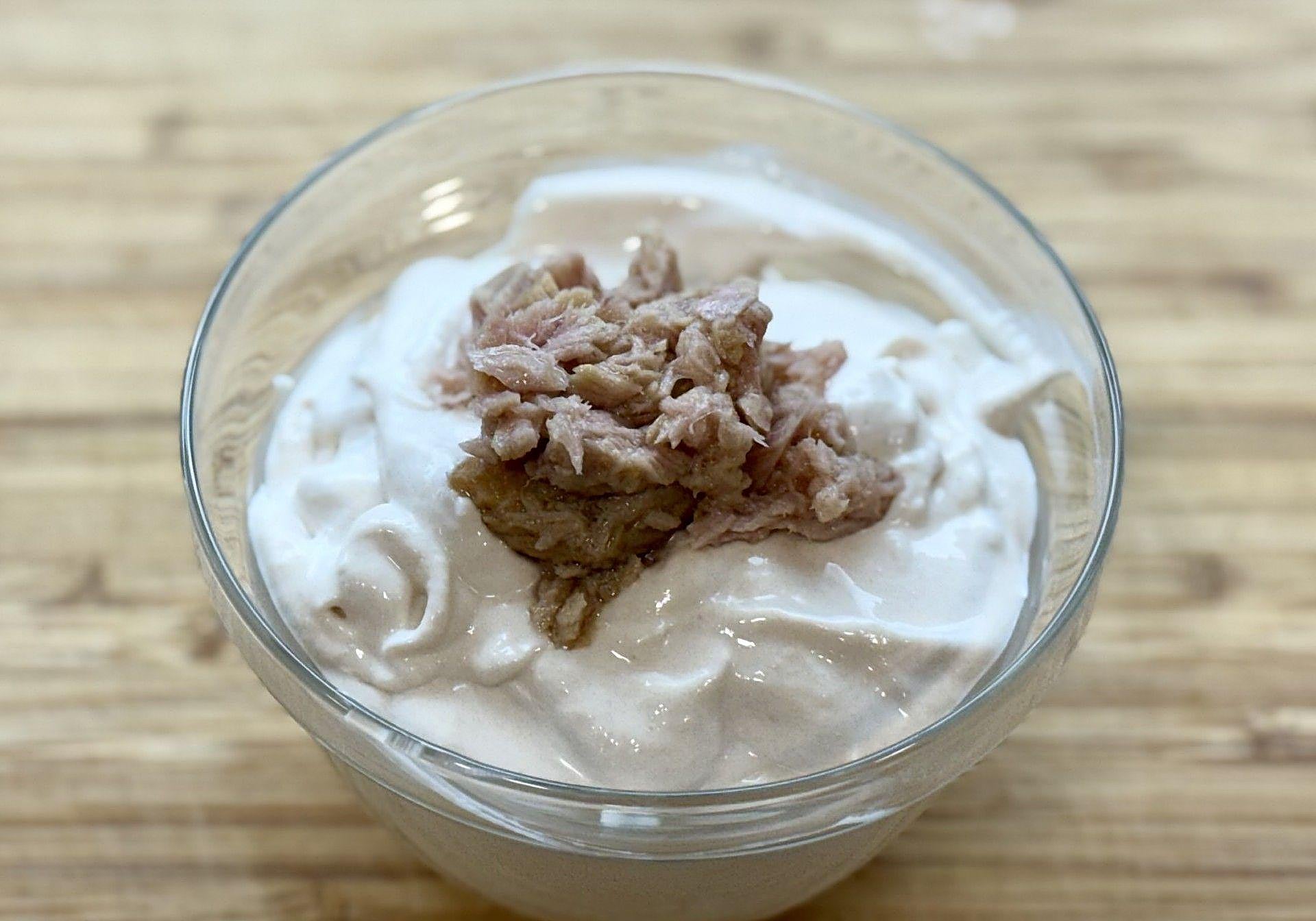Para el paté de atún, añadir 60 g de atún en aceite de oliva