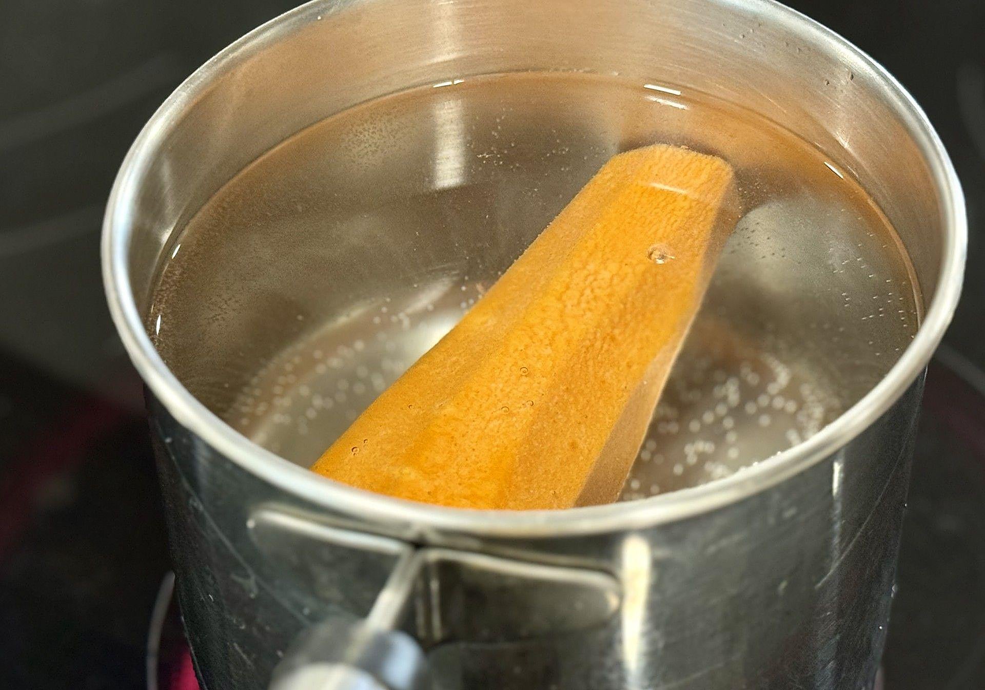 Lo mismo haremos con la zanahoria a la que rasparemos la piel y la coceremos durante 15 minutos en agua hirviendo.