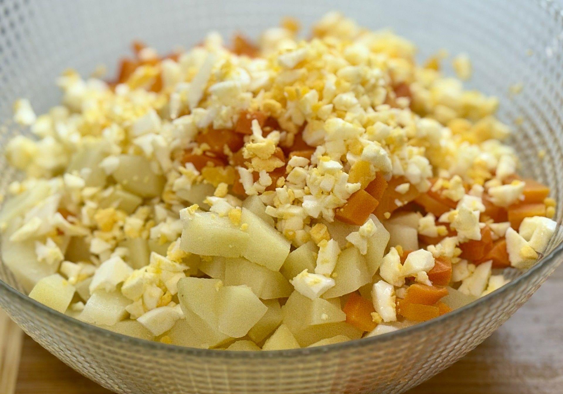 Y es que, con la receta de hoy, con sus papas y zanahorias que le aportan ese toque dulzón, la siempre untuosa mayonesa que recomendamos emplees la envasada para no llevarte sustos ni contratiempos en verano y mucho menos si estás de vacaciones y sin que le falte ese ese puntito ácido tan característico de los antojosos encurtidos.