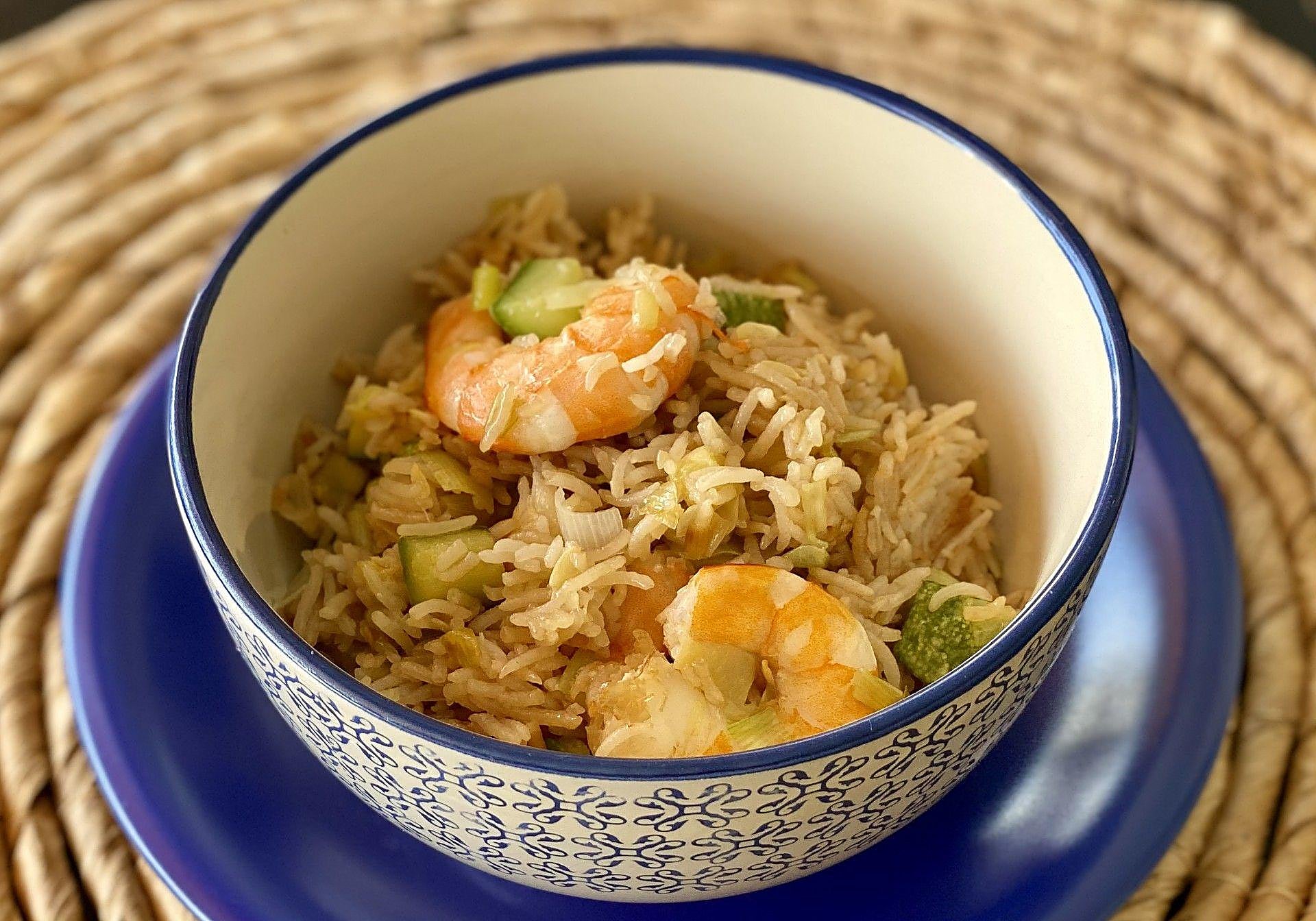 Almuerzo: un arroz salteado con langostinos para dar la bienvenida al fin de semana.