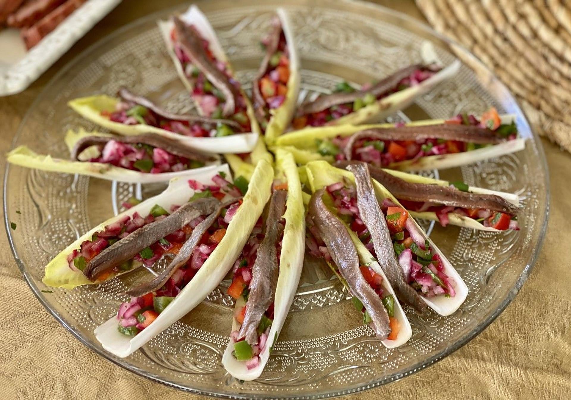 La cena la protagonizarán estas endibias con vinagreta y anchoas. Deliciosas.