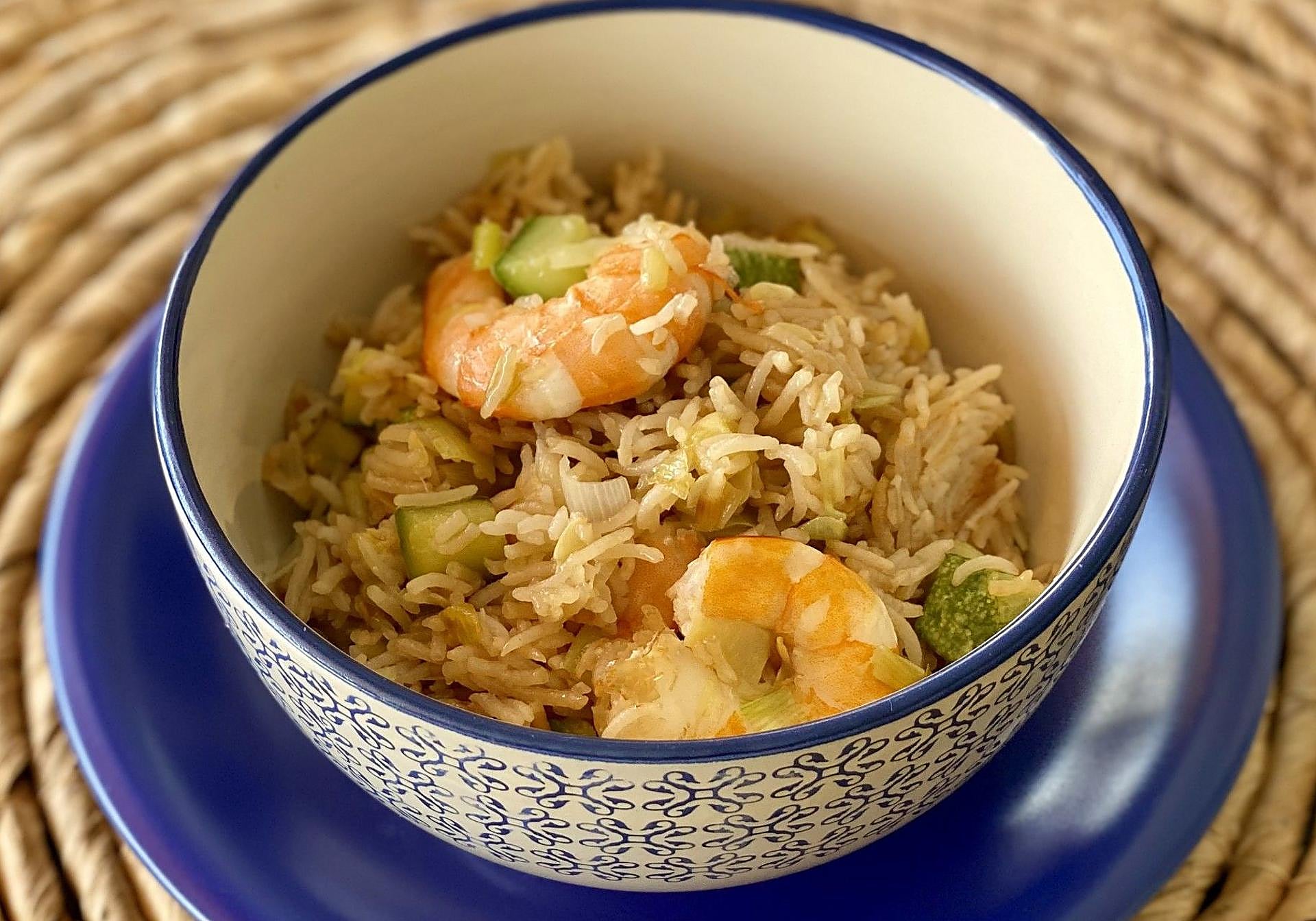 A mediodía preparar este arroz salteado con langostinos y verduritas, una receta de lo más irresistible.