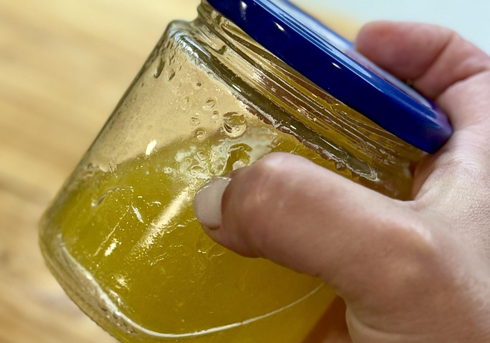 Taparemos el tarro y agitaremos así conseguiremos que el aliño emulsione mejor y se mezclen perfectamente.