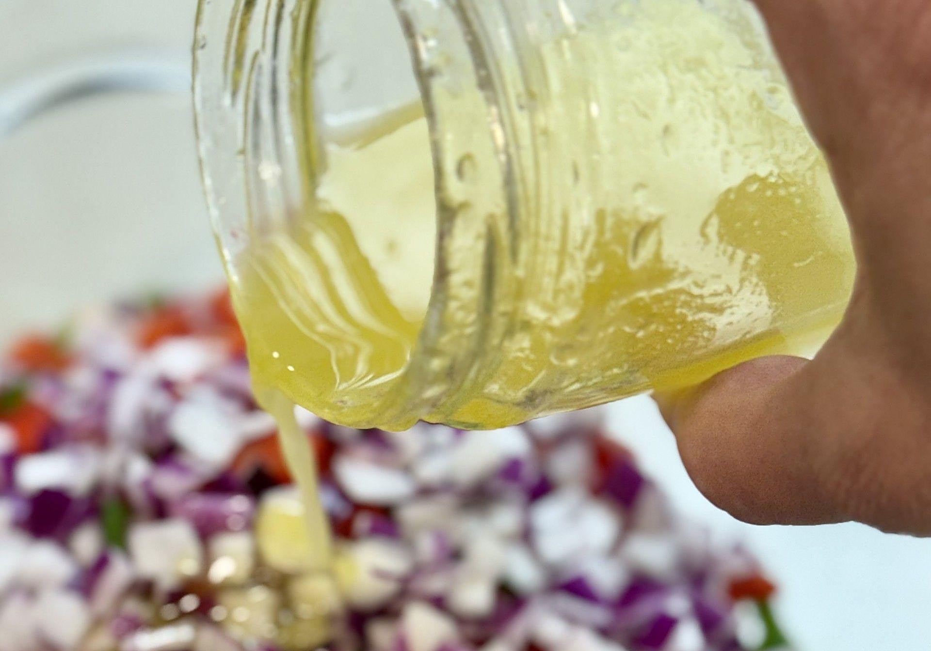 Verteremos el aliño de manera uniforme por todo el salpicón.