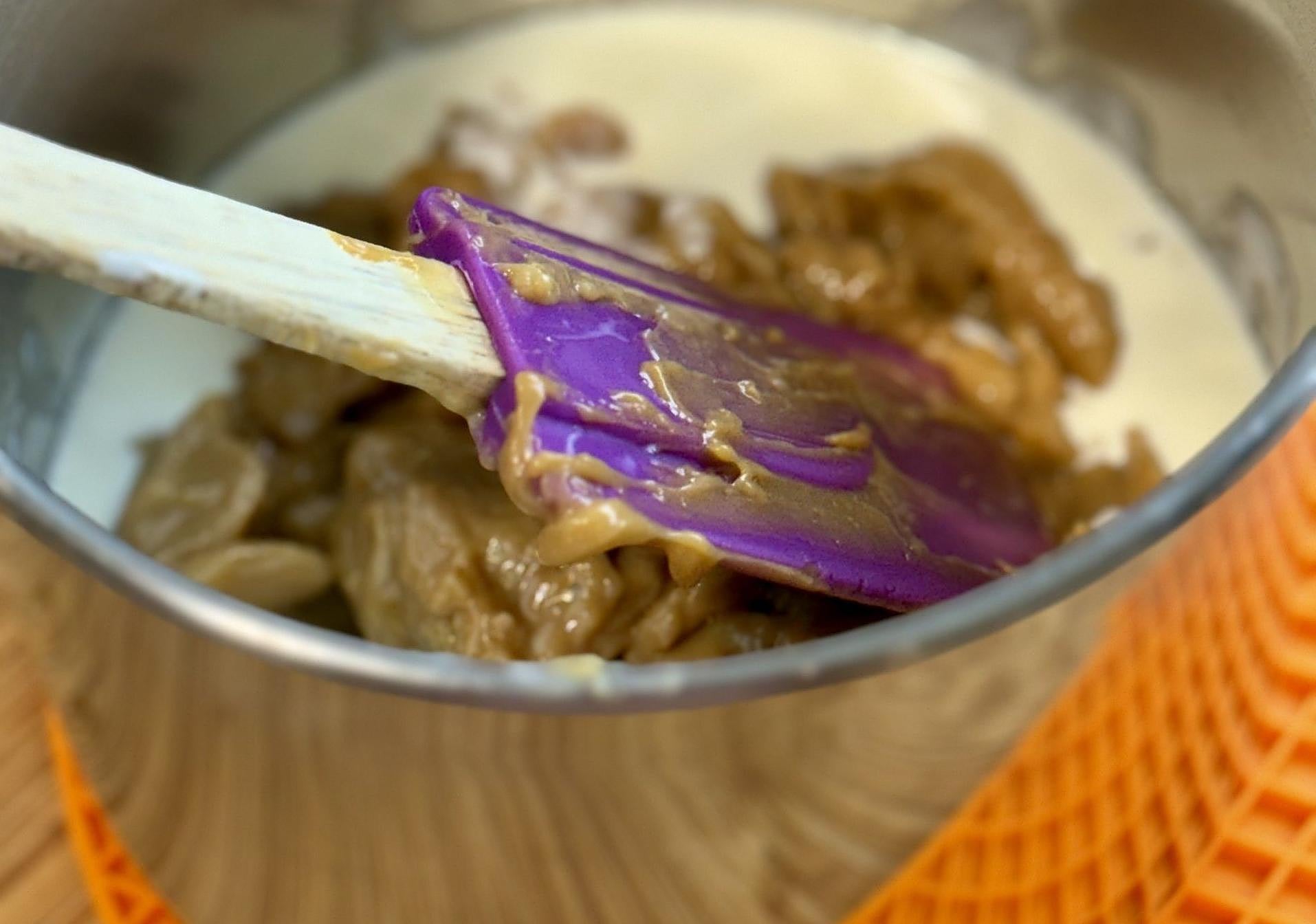 Mezclaremos con movimientos envolventes para que no pierda cuerpo la elaboración.