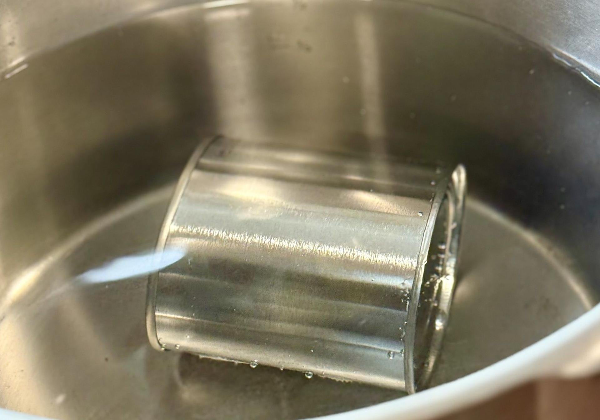 En una olla a presión, colocaremos la lata ladeada y la cubriremos de agua.