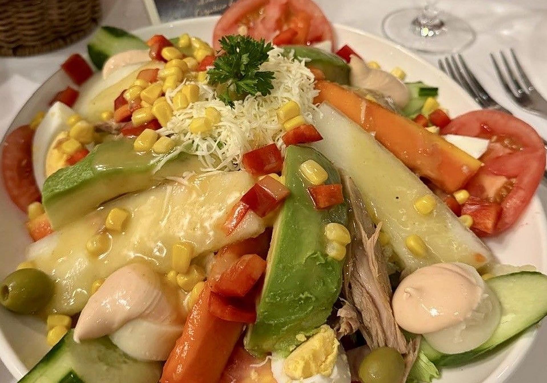 Los entrantes se multiplicaron en cada mesa, arrancando con uno de sus clásicos infalibles: la ensalada de la casa acompañada de la fresca referencia 'María Rosa'.