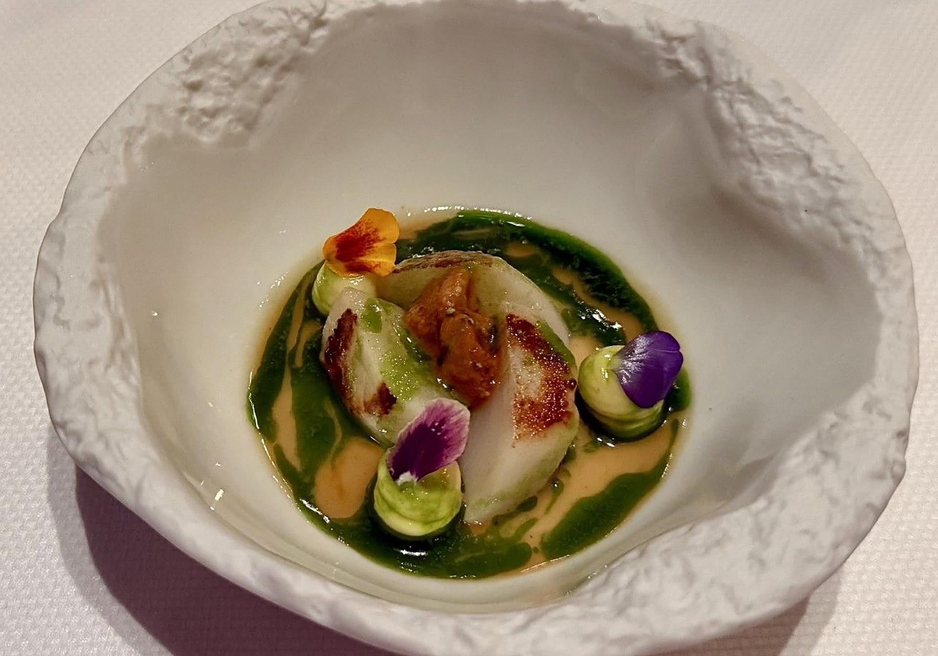 «Partimos del recuerdo», parece susurrar cada pase de sus menús que permanecen prácticamente idénticos a los que dibujaron la estela de Bevir en la capital, demostrando que la verdadera esencia no se ha perdido en el camino ni en el tiempo aun cambiando de escenario. Y es que, aunque la sala ahora no evoque la intimidad de aquel primer espacio, la verdad se impone desde el primer bocado: la cocina única y vibrante de Espino, con la tierra y el mar como puntos cardinales de su brújula.