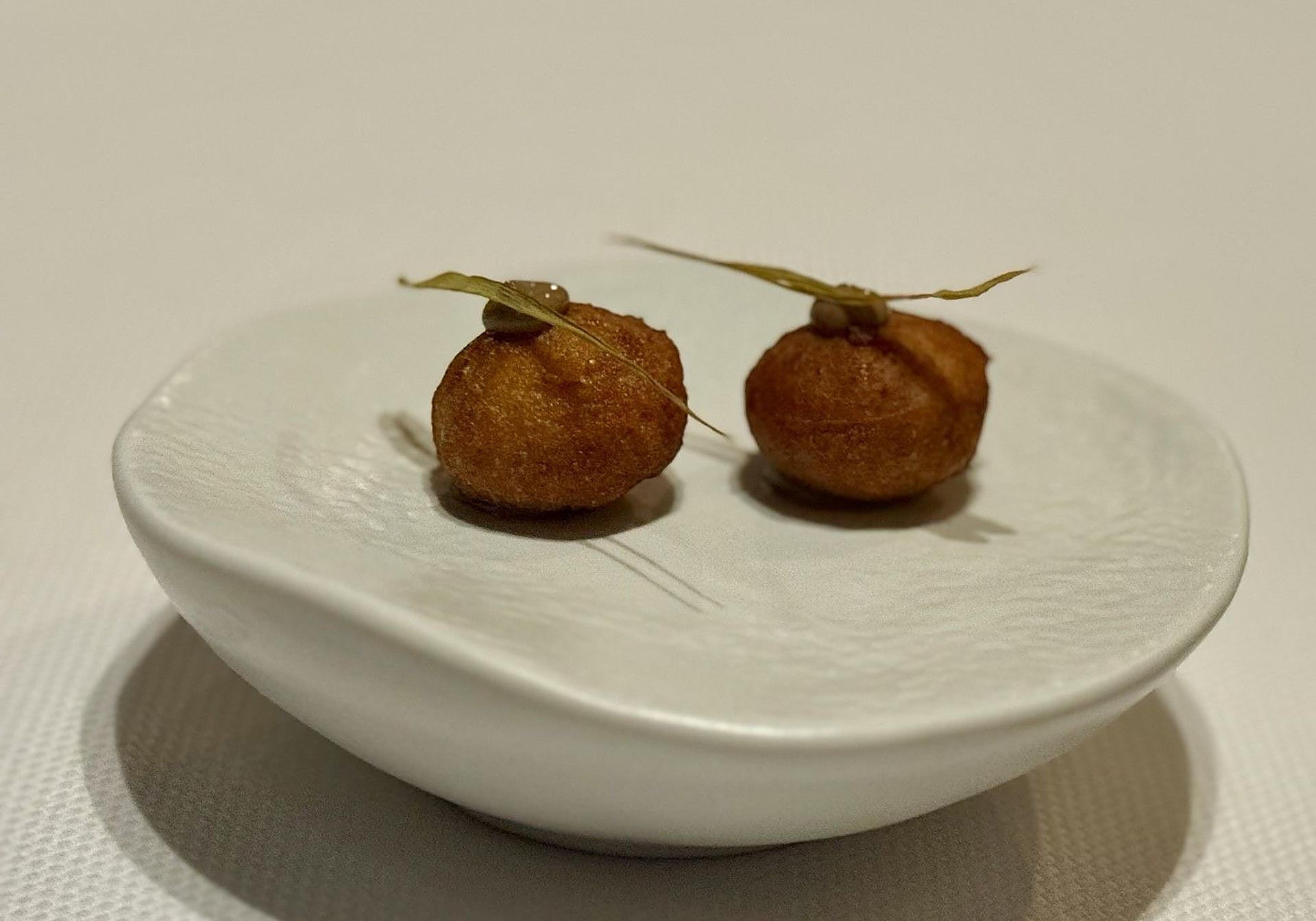Desde el arranque, Espino abre dos caminos en el mapa de Bevir con los snacks que te llevarán hacia las raíces o hacia el mar. Solo él es capaz de estimular el paladar desde la huerta, con su hoja helada, dejarlo limpio y preparado para todo lo que le queda por contar. Y sí, su bollo de millo continúa en el repertorio y su pepino y rosas no puede ser más adictivo.