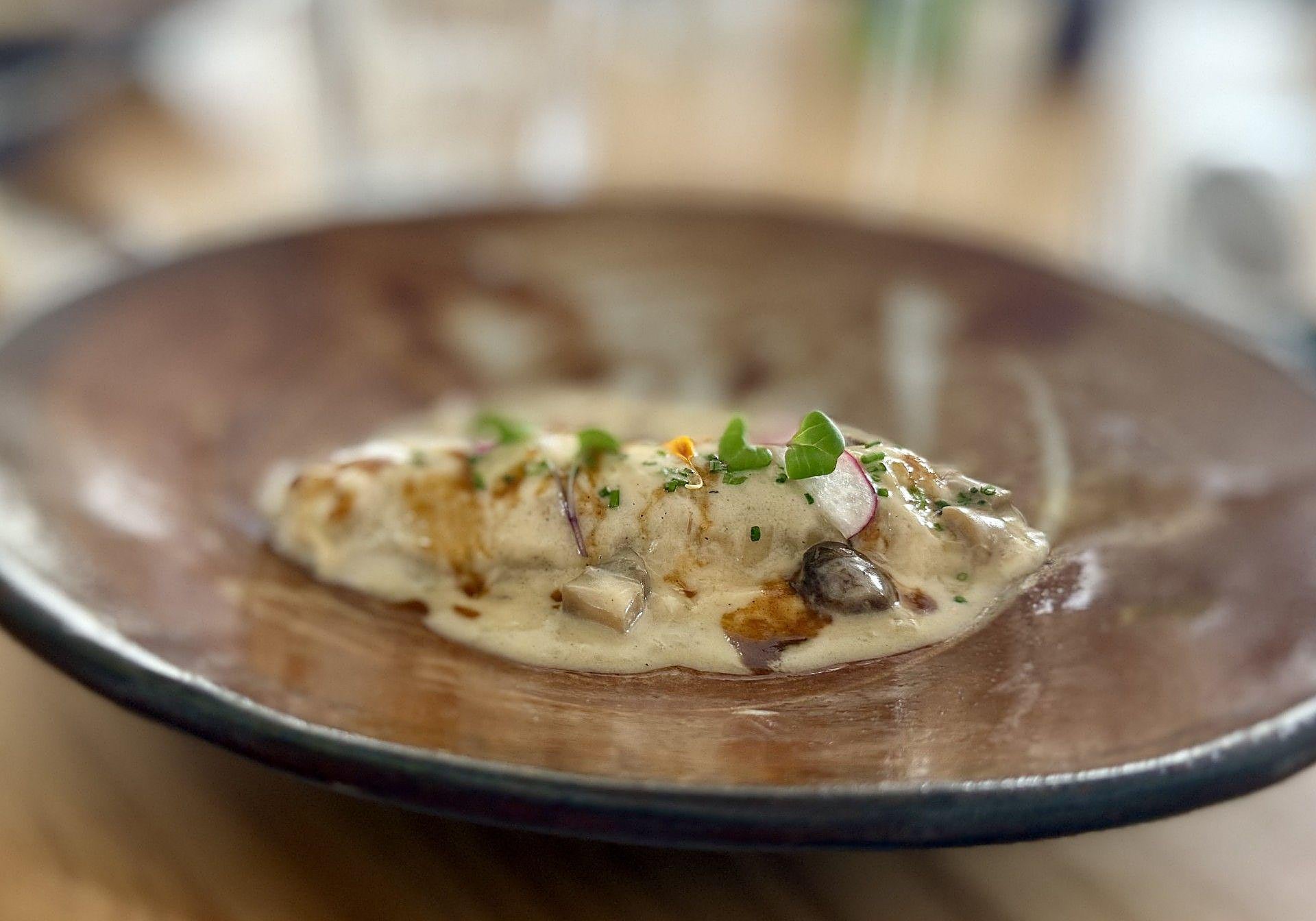 Y casi lo mismo que contar de su canelón de pollo y papada de cerdo envueltos en una delicada bechamel de setas, una elaboración que también firmará las ganas de regresar a De Revés Bistró.
