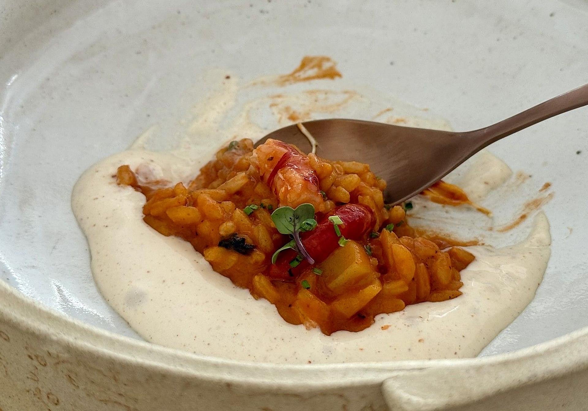En su carta avisan de estar dispuestos a configurar un menú degustación como prueba expresa de todo y de lo tanto que son capaces de hacer ya la que darán contenido según el día y el producto, ahora, avisamos que sean innegociables su arroz meloso de camarón y sepia rodeado de una espuma ligera de kimchi. Mezclar y probar, además de no parar hasta rebañar. Delicioso y súper sorprendente.