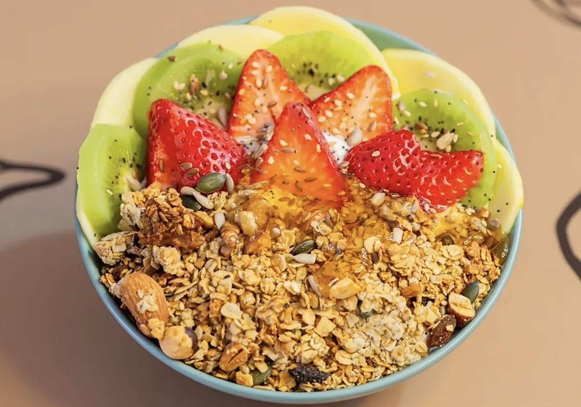 Por si todo esto no fuera suficiente a la hora de que formes un brunch, en K. Fé no falta de nada: bowl de yogur con fruta fresca y granola casera al que le añaden miel bio y semillas. Un humus casero que acompañan de pan de masa madre, y con sus correspondientes bastoncitos de pepino y zanahoria, además de disponer de un rincón de productos dulces, también elaborado por ellos donde no falta la tarta del día, pancakes que puedes elegir en versión dulce o salada o simplemente decantarte por las tostadas de toda la vida, esas que llevan mantequilla y mermelada.