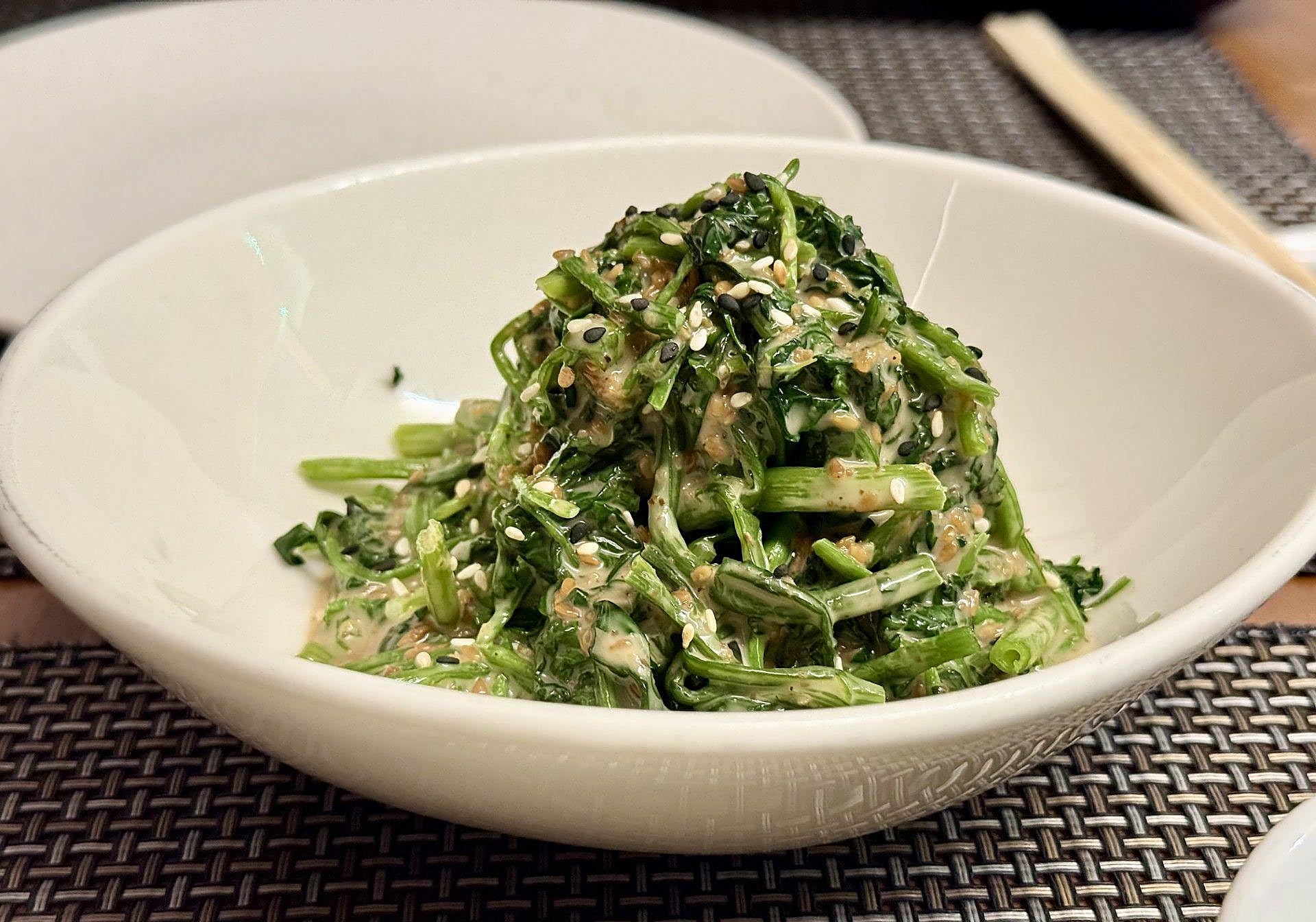 Nada se esconde y todo salta a la vista desde que comienza el recorrido, con unas algas finamente aliñadas y edamame como aperitivos. A partir de este momento, las sorpresas no se hacen esperar y llega a la mesa una ensalada de berros frescos aliñados con salsa de cacahuetes y sésamo tostado, una combinación capaz de acariciar el paladar y prepararlo para lo que está por venir.
