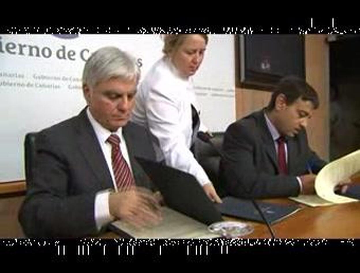 José Miguel Pérez firma un convenio de colaboración para promocionar la lucha canaria en los centros educativos de las islas.