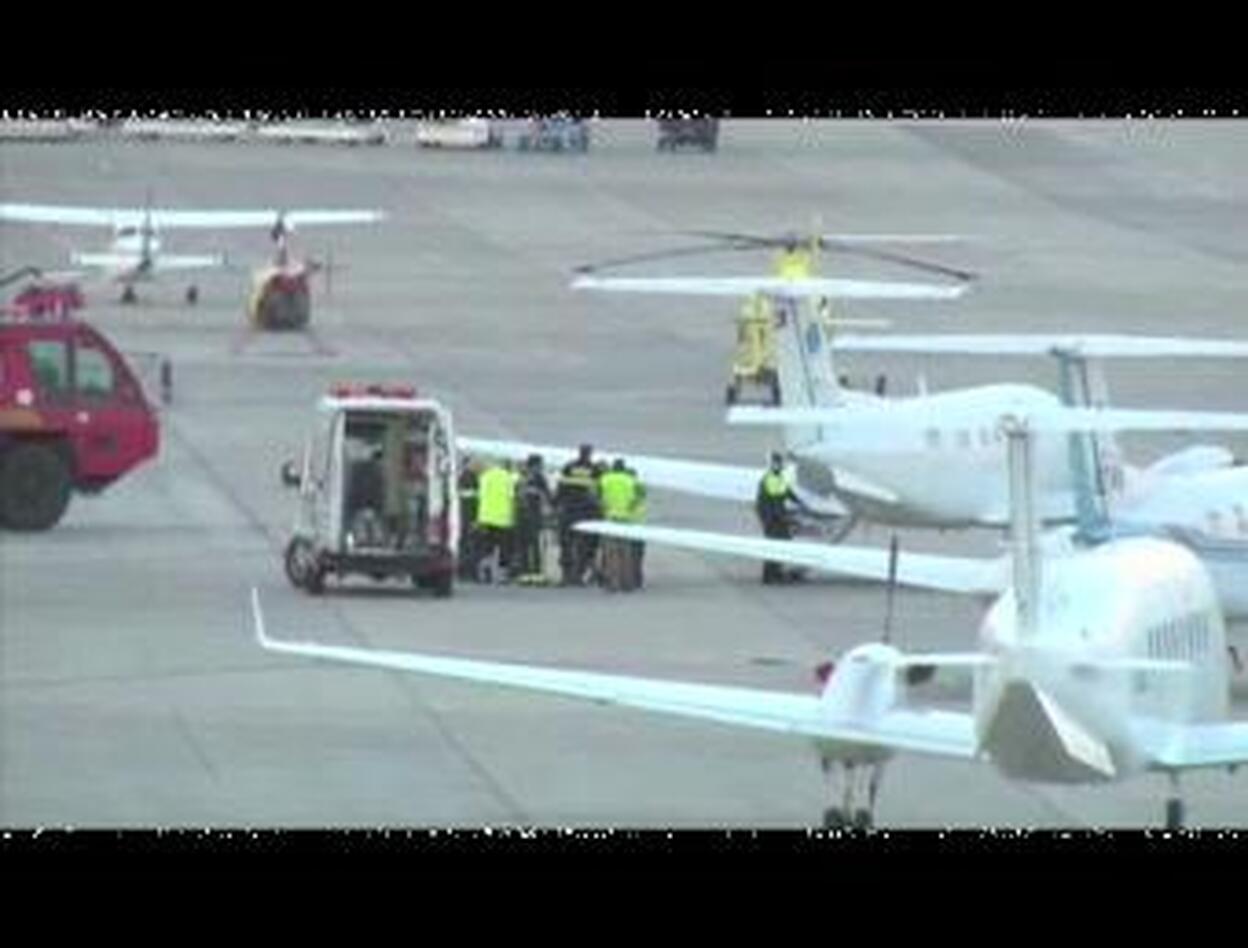Imágenes del traslado en avión de la herida grave por la explosión en Mogán.