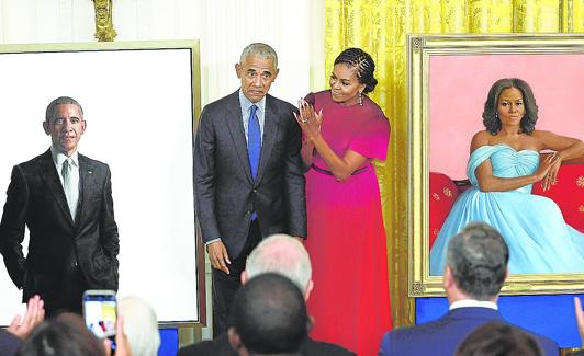Barack Obama y su mujer, Michelle, regresaron ayer a la Casa Blanca por primera vez desde que el exmandatario terminase su segundo mandato, en 2017, para desvelar sus retratos, obras de Robert McCurdy y Sharon Sprung respectivamente.