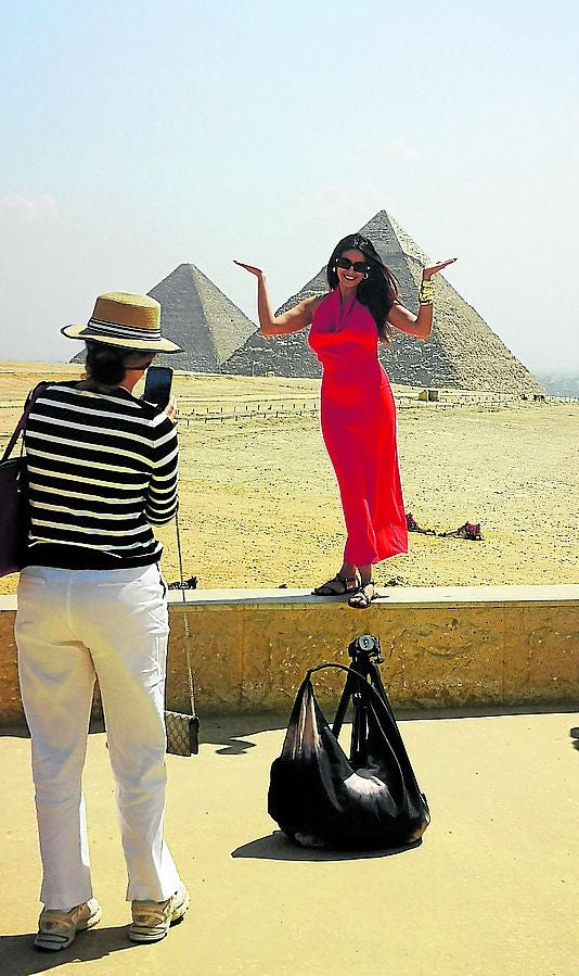 La aventura empieza por el hotel, de cinco estrellas y treinta pisos y con un perro experto en explosivos en la barrera de acceso. Después, a un espectacular amanecer sucede la banda sonora de la ciudad: un lenguaje secreto de miles de cláxones y bocinazos que solo los locales saben interpretar. La primera parada es la explanada de Guiza. Las taquillas ofrecen las primeras colas, donde decidir, antes de pagar la entrada de 9 euros, si por otros 30 accedes a la gran pirámide de Keops. Una vez dentro un autobús-lanzadera une todos los puntos de interés: la gran pirámide de Kefrén, la única que conserva el remate liso en su punta con restos de color rojo, la de Micerinos, la Esfinge… Una influencer local, vestida de rojo, alterna poses para Instagram con breves vídeos para Tik Tok.
