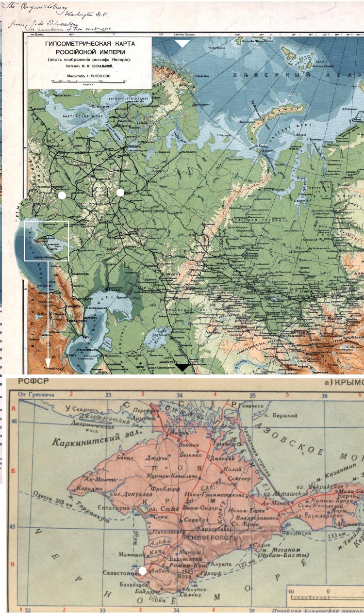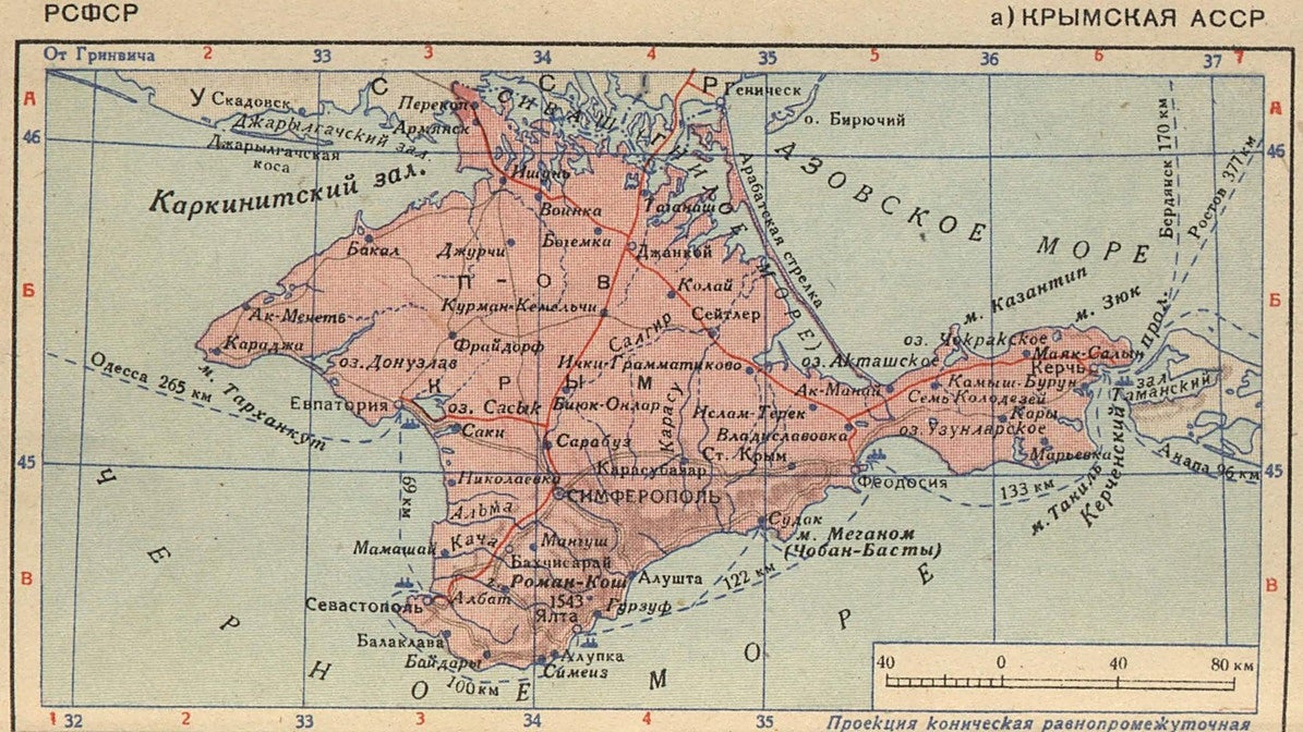 Crimea en un mapa soviético de 1938
