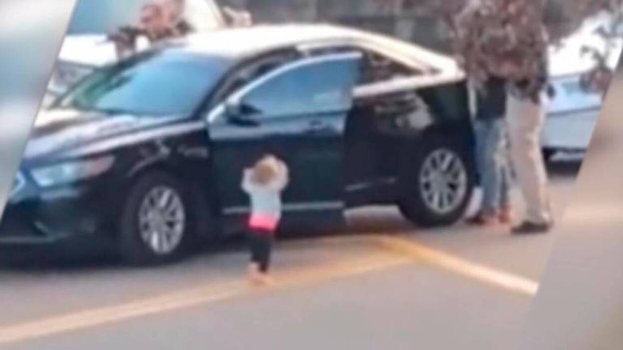 Sus padres habían sido detenidos por robar, y la niña de dos años sale del coche con las manos en alto y se “entrega” a la policía.