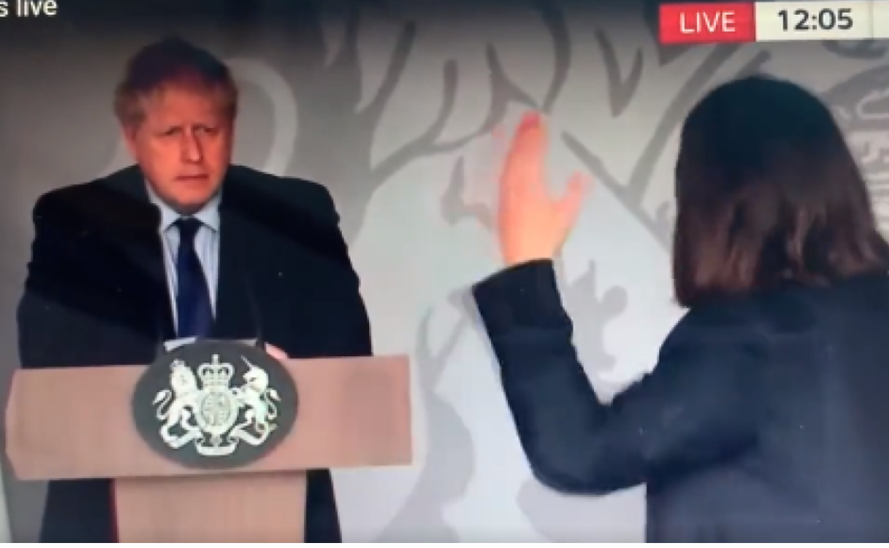 La reportera Daria Kaleniuk rompe a llorar en una rueda de prensa del primer ministro británico en Varsovia