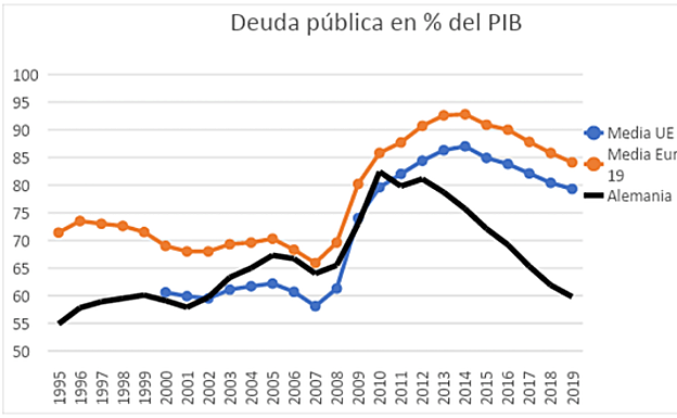 Entre 2008 y 2011, y a causa de la gran recesión, Alemania volvió a registrar déficits pero luego redujo su deuda pública vertiginosamente en comparación con las del resto de las economías de la UE.