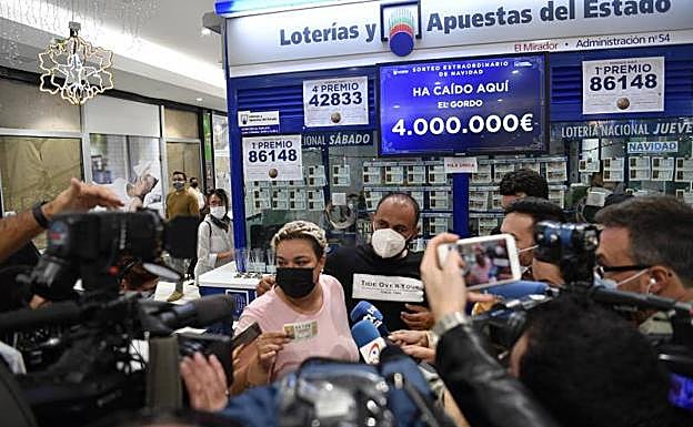 400 décimos muy repartidos, vendidos uno a uno por ventanilla, que suman un premio de 160 millones de euros son los que vendió del gordo del sorteo de la lotería de navidad la administración del centro comercial El Mirador.