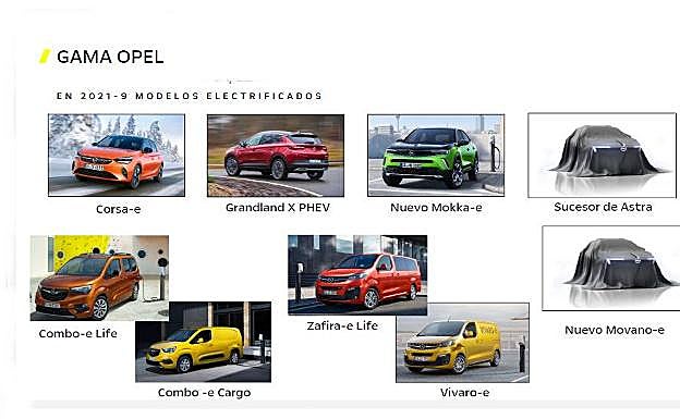 En la actualidad, más de la mitad de la gama está electrificada. El catálogo Opel de automóviles 'cero emisiones' está formado, en lo que se refiere a eléctricos, por el urbanita Opel Corsa-e y el SUV sofisticado Opel Mokka-e, al que pronto se sumará la versión eléctrica del polivalente Opel Combo, el Opel Combo-e. En el apartado de los híbridos enchufables, la marca del rayo cuenta con dos versiones del Opel Grandland X Hybrid, con dos y cuatro ruedas motrices, respectivamente. En cuanto a vehículos comerciales, a los Combo se suman las versiones eléctricas de Zafira y Vivaro-e. A todos ellos se sumará en breve el modelo que relevará en su catálogo al Astra, que contará con una variante electrificada, así como el nuevo Movano-e.