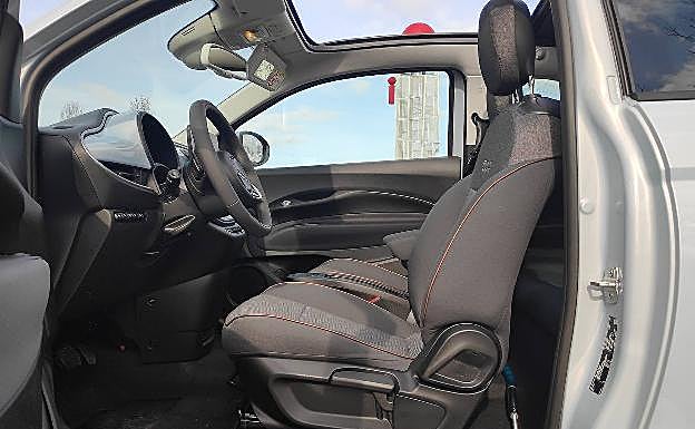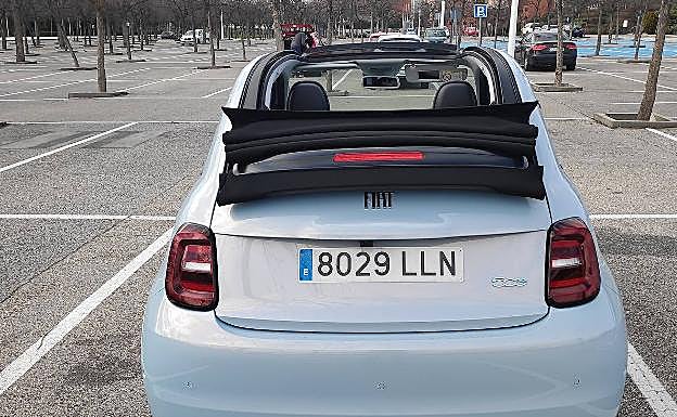 En materia de carga, admite carga rápida de hasta 85 kW en corriente continua gracias al cual se necesitan solo 5 minutos para disponer de una autonomía de 50 kilómetros. En un conector de corriente alterna convencional doméstico (schuko) se pueden obtener unos 15 kilómetros de autonomía a la hora. Y en nuestra unidad, con techo retráctil Cabrio, cabe destacar también el buen funcionamiento de este sistema, con solo apretar dos botones junto al retrovisor central -cuenta con dos posiciones: solo techo y techo + luneta trasera-.