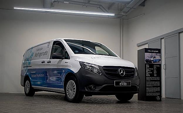 Algunas soluciones idénticas se han tomado también en el eVito furgón refrigerado, carrozado en este caso por Subiela y Zanotti. El sistema de refrigeración se alimenta sobre baterías independientes de 5,5 kW, y es capaz de mantener entre 0 y 25 grados durante siete horas con un incremento de peso de 225 kilos. Dicho sistema independiente permite mantener la batería de la eVito, de 150 km, gracias a una batería de 35 kWh que se recarga en seis horas en corriente alterna. Un bastidor extraíble permite revisar o cambiar las baterías si hay algún problema.