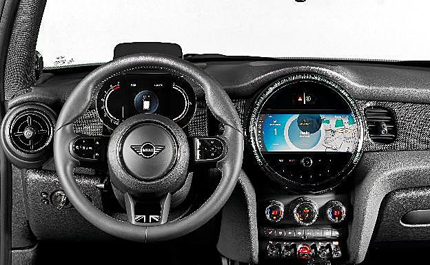 En lo que al interior se refiere, la novedad son los asientos deportivos con color Light Chequered, que combinan a la perfección con el acabado de pintura exterior Zesty Yellow. Pero si algo destaca llamativamente es el número de elementos cromados, que se ha reducido considerablemente, así como los dos difusores de aire redondos que ahora van enmarcados en paneles negros. De hecho, se han rediseñado por completo y están empotrados para quedar a ras de la moldura interior. Dicha moldura interior, disponible opcionalmente en los nuevos acabados Silver Chequered y Mini Yours Aluminium, así como el Electric para la versión cero emisiones, se extiende ahora por todo el ancho del cuadro de instrumentos hasta la zona del conductor.
