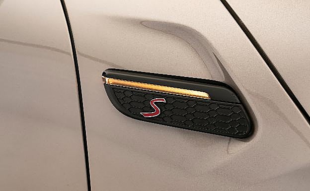 Llaman la atención los nuevos contornos de los pasos de rueda. Además, los intermitentes laterales integrados en los 'Side Scuttles' rediseñados cuentan ahora con tecnología LED. Un diseño de la superficie reducido caracteriza la zaga de las versiones del Mini con motor de combustión. Un marco negro rodea la forma hexagonal de la parrilla del radiador. La luz antiniebla trasera está ahora integrada en el faldón trasero como una estrecha unidad LED.