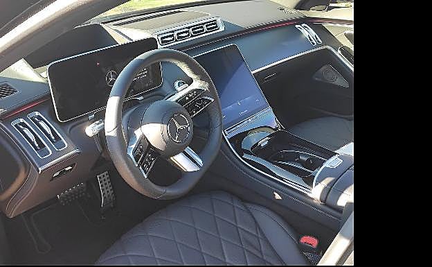 El corazón del nuevo Clase S es la segunda generación del sistema de inteligencia artificial MBUX. Se puede interactuar con él, además de con la voz, con hasta cinco pantallas interconectadas (una de ellas, una tablet opcional), siendo la protagonista un enorme visualizador central de 12,8 pulgadas OLED. Muestra desde el climatizador (cuyo manejo, pese a carecer de mando físico, no se hace incómodo al estar siempre presente) hasta la navegación o la visión de la cámara frontal o las opciones de masaje.