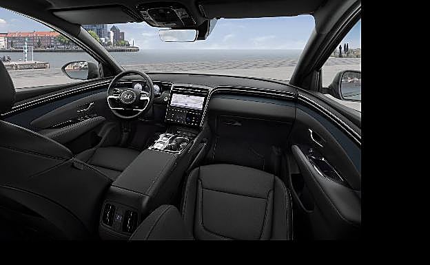 Cuando accedes a su habitáculo, configurable y totalmente digital, destaca su nueva instrumentación digital abierta de 10,25 pulgadas y una nueva pantalla táctil AVN (Audio Video Navigation) de 10,25 pulgadas, que ocupa la parte central del vehículo. Los diseñadores de Hyundai han prescindido de palancas y botones físicos, por lo que todas las funciones del sistema AVN, así como de la calefacción, la ventilación y el aire acondicionado se controlan de manera táctil, lo que convierte al Tucson en el primer modelo de Hyundai con una consola con pantalla táctil completa.