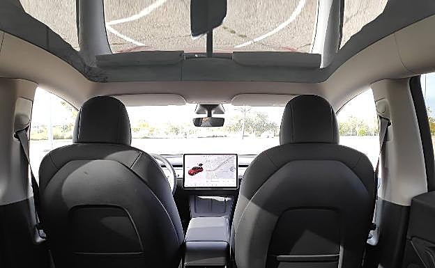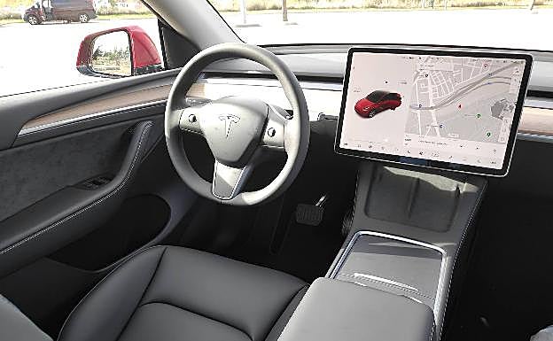 El interior destaca por lo que se podría denominar “sobriedad tecnológica”. No hay botones, y tampoco mandos físicos, salvo el volante, una palanca de cambios insertada en la columna de dirección y otra, en el lado izquierdo, para los intermitentes. Al igual que el modelo del que deriva, el Model 3 (comparten más del 70% de las piezas), el protagonismo es para una enorme pantalla de tipo tablet de 15 pulgadas que es el verdadero epicentro del vehículo. Con ella se maneja absolutamente todo: desde la climatización hasta las luces, los modos de conducción o hasta la apertura de la guantera.