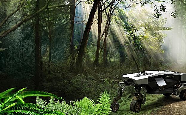 Este modelo está concebido para transportar cargas útiles por terrenos remotos e inaccesibles y ha sido desarrollado para actuar como un vehículo de tracción a las cuatro ruedas o como una máquina andante de cuatro patas