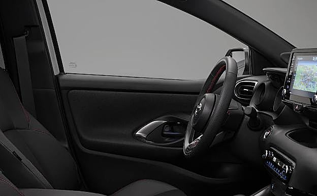 Dentro del habitáculo, la condición especial de esta edición limitada y exclusiva se concreta en asientos deportivos GR SPORT con tapicería de cuero y Alcantara, pespuntes en rojo y logo GR, y volante de tres radios de cuero perforado con pespuntes en rojo. En cuanto al sistema multimedia, equipa Toyota Smart Connect con pantalla táctil de 9 pulgadas y conexión sin cable vía Apple CarPlay.
