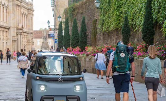 El Camino de Santiago es un trayecto de recogimiento y de exploración interior, pero también un recorrido en el que te adentras por sendas alejadas de las prisas de la gran ciudad. Etapas cortas, en las que la velocidad no importa y el contacto con la naturaleza te empapa mientras avanzas. Desde la Edad Media, este camino que recorrían los peregrinos en busca de la tumba del apóstol Santiago, se ha hecho andando o a caballo, posteriormente empezaron los que lo realizaban en bicicleta. Formas de transporte ecológicas y sin emisiones. Pero con la llegada del siglo XXI esta premisa de desplazarse de forma verde, se puede hacer de otra manera, como ha demostrado el Ami, el artefacto eléctrico de Citröen.
