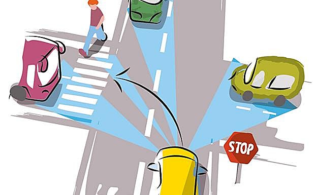 4. Intersecciones complicadas: en las intersecciones señalizadas con Stop o semáforos detenga siempre el vehículo y observe si otros vehículos se aproximan, para ceder el paso. En los giros observar además que nadie viene de frente y que no hay peatones u otros usuarios cruzando la vía.